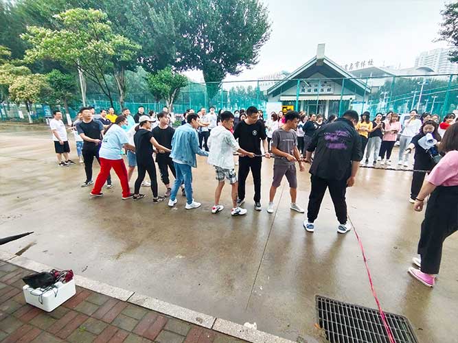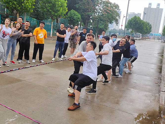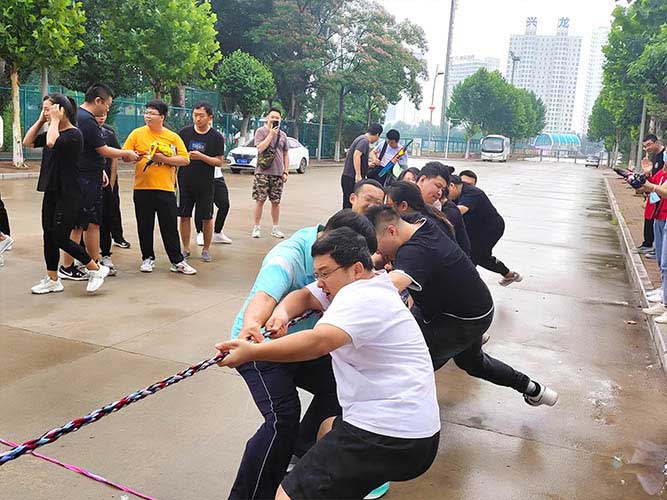 哨聲響起,比賽一觸即發(fā)!大家團(tuán)結(jié)一致努力拼搏著!有的緊握麻繩,咬牙使勁;有的扎穩(wěn)腳步,不可撼動(dòng);有的身體向下傾斜,鉚勁拉繩……大家的勁往一處兒使,心往一處兒聚。全神貫注的眼神、奮力拉扯的身影,無不彰顯了員工們的意志。