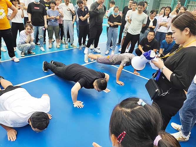 接下來是兩個(gè)單人加分項(xiàng),先是為男生準(zhǔn)備的俯臥撐,當(dāng)然,如果有女生想挑戰(zhàn)的,也可以上場,并且冠*可以直接去選一個(gè)獎(jiǎng)品拿走。